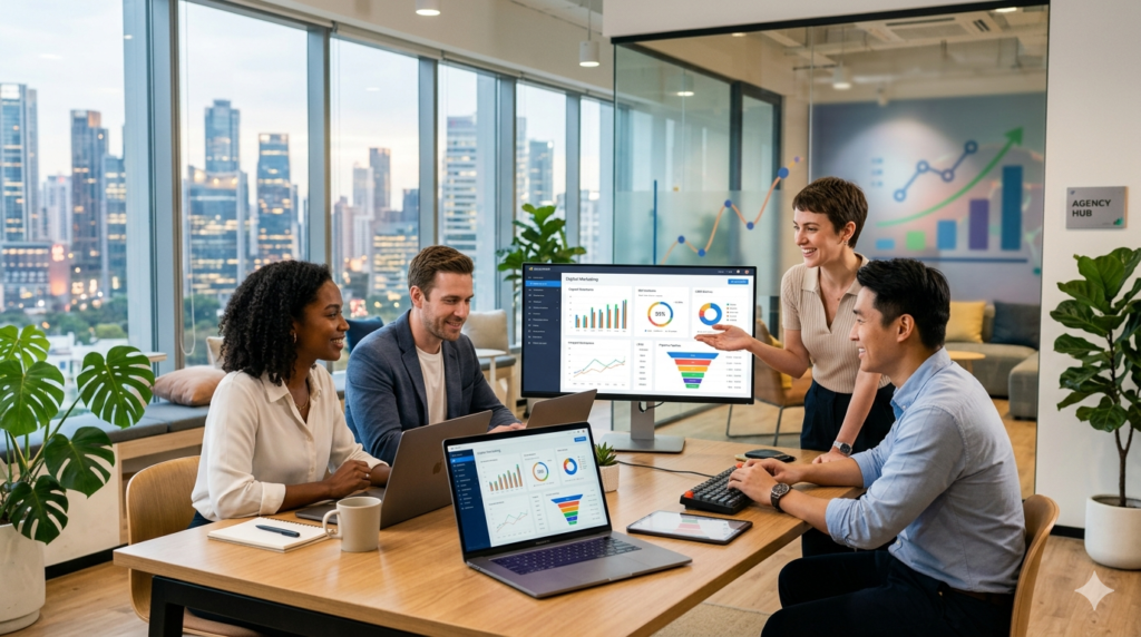 Paid campaigns can generate leads within weeks, while SEO and organic growth usually show results within 3–6 months.