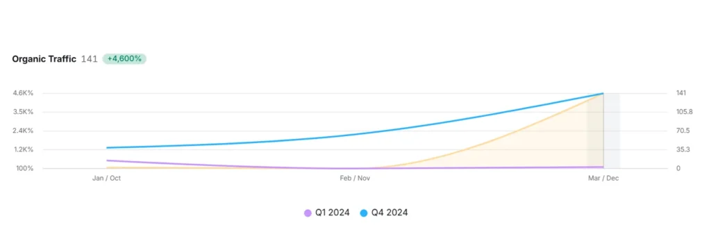 | Organic Traffic | Google Analytics 4 | +3,603.6% |