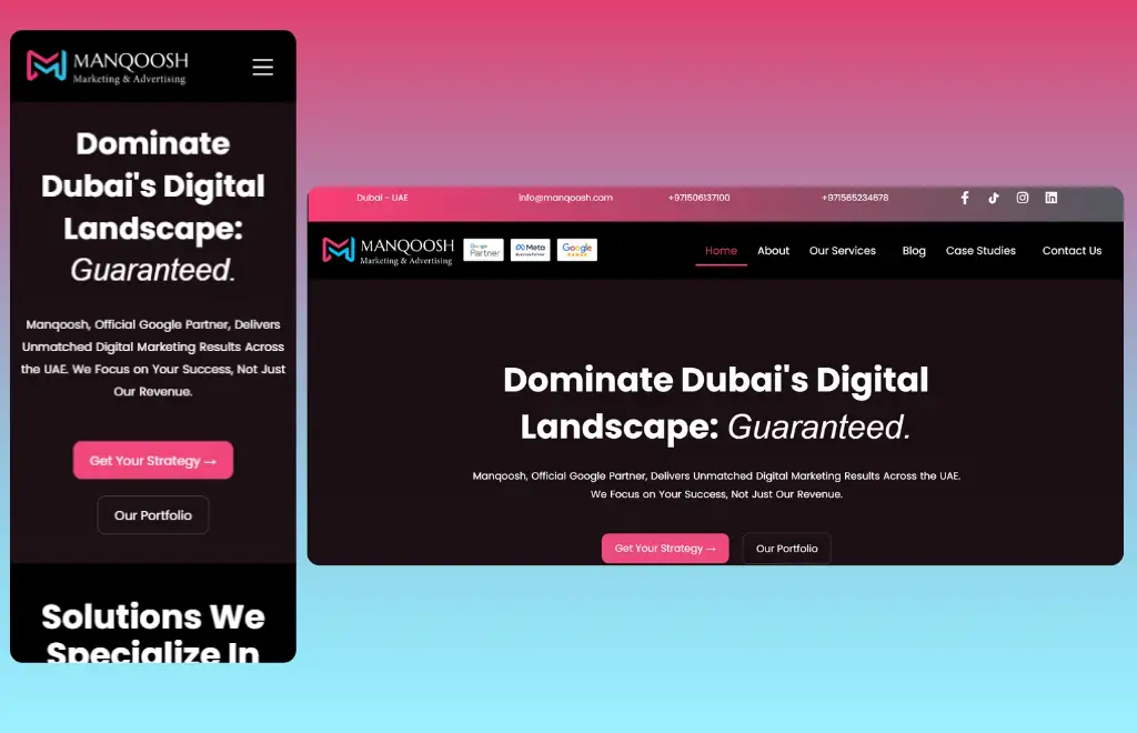 Manqoosh Marketing, we offer professional custom website development tailored to your unique business needs. From design to functionality, we create user-friendly, responsive websites that enhance your online presence and engagement.
